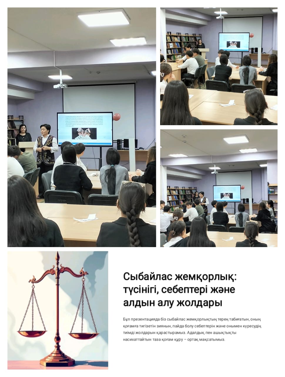 Мақсаты: Сыбайлас жемқорлықтың қоғамға тигізетін әсерін түсіндіру, оқушыларды адалдық, жауапкершілік, әділдік сияқты құндылықтарға баулу болатын.